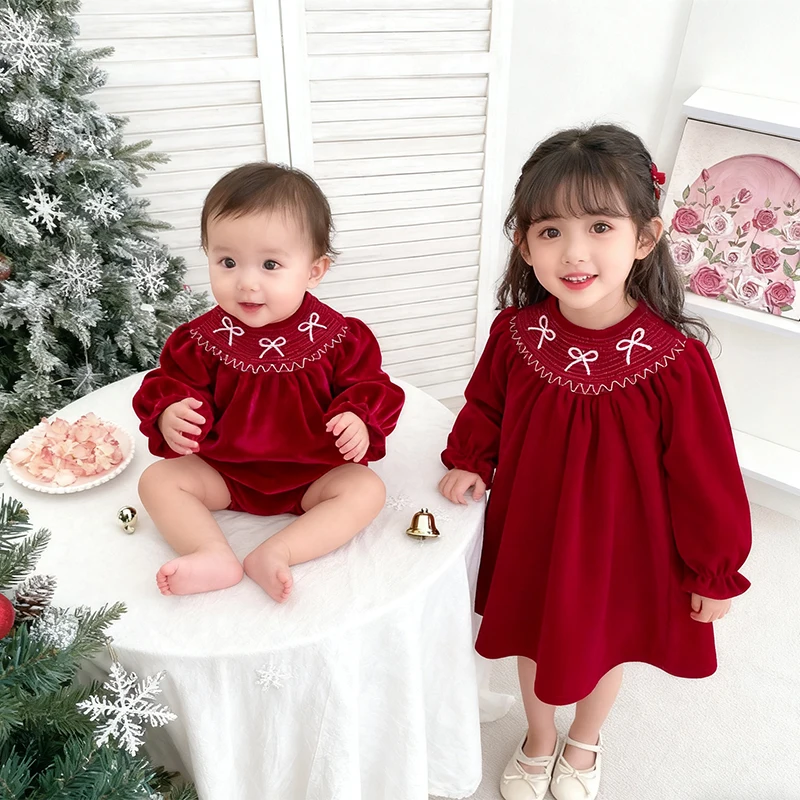 2025 Christmas Children Clothes New Year Clothing Sister Dress 0-6Yrs Girl Party Dress Kids Princess Dresses Baby Girl Romper